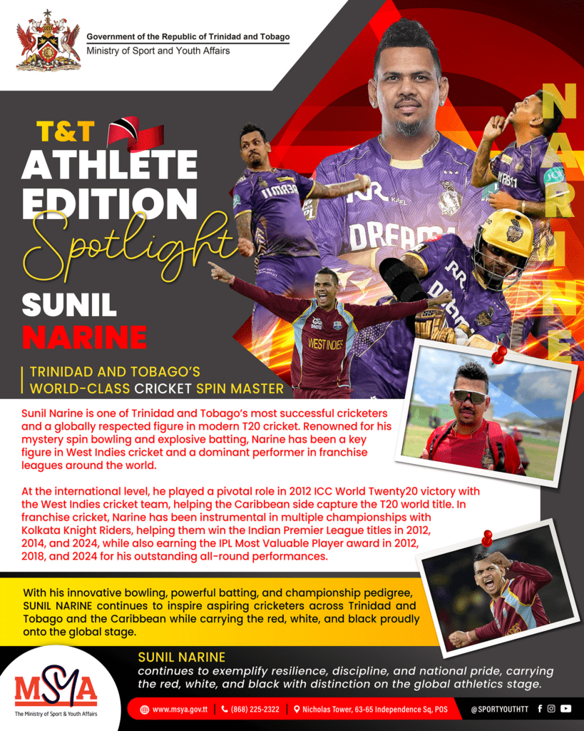 Categories News T&T Athlete Edition Spotlight – Sunil Narine Post author By admin Post date March 20, 2026 ← T&T Athlete Edition Spotlight – Cherelle Thompson → T&T Athlete Edition Spotlight – Leah Bertrand