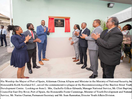 Youth Development and National Service Minister, the Honourable Foster Cummings, recommissioned the Youth Development Centre at Basilon Street, on Thursday, April 10, 2025. Minister in the Ministry of National Security, the Honourable Keith Scotland S.C., and Mayor of Port of Spain, His Worship Alderman Chinua Alleyne were on hand and participated in the ceremony.